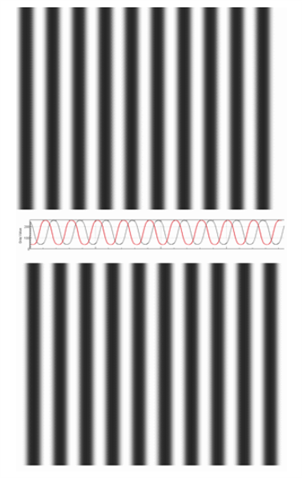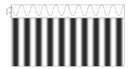相移方法利用一組灰度圖像,其像素強(qiáng)度由正弦波模式定義,如圖2所示。通常,使用三個(gè)(或可能更多)圖像之間具有已知相移的圖像。將相移后的圖案順序投影到對象上,然后在進(jìn)行相位展開操作之后,將所得的差異圖像與參考平面進(jìn)行比較,以提取原始對象的表面特征。
