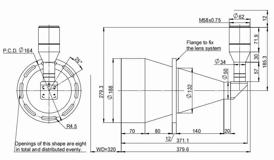 TTL44系列標準雙遠心鏡頭標準M58接口,最大兼容44mm(對角線44mm)靶面工業相機。